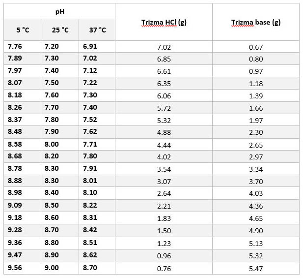 1.在常溫(25℃)下,Tris的pKa為8.1;根據(jù)緩沖理論,Tris緩沖液的有效緩沖范圍在pH7.1到9.1之間。實(shí)際操作中,在pH值小于7.5和大于9.0時(shí),Tris的緩沖能力是非常低的。
