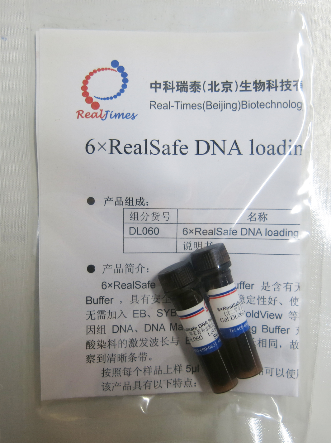 6×RealSafe DNA loading buffer是含有無毒核酸染料RealSafe配制而成的 Loading Buffer ,具有安全、靈敏度高、穩(wěn)定性好、使用方便等優(yōu)點(diǎn)。使用本產(chǎn)品時(shí),在制膠過程中無需加入 EB、SYBR Green 和GoldView