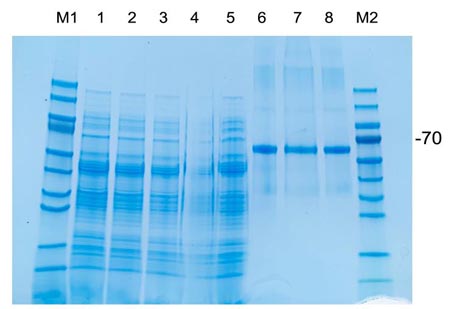 lane 8:BSA 0.5M NaCl溶液脫鹽柱處理上樣量5μl