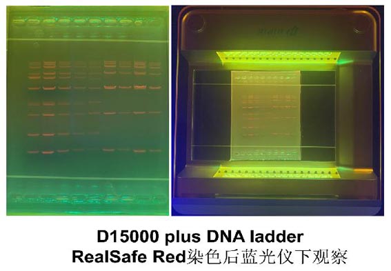 注意:使用這種預(yù)先加入染色劑的瓊脂糖凝膠,每次不易加入太多的 DNA 樣品,否則容易造成飽和現(xiàn)象,可以做多個(gè)不同濃度的 DNA Marker,以確定最佳 DNA 上樣量。