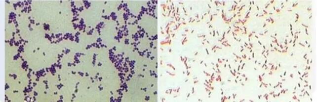 葡萄球菌-革蘭氏陽性菌 紫色 大腸桿菌-革蘭氏陰性菌 紅色