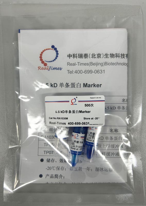 6.5 kD單條蛋白Marker 以干粉狀態(tài)提供。以每次使用配制好的溶液10 μl(0.2 μg/μl)計(jì)算,該產(chǎn)品可以大約使用500次。