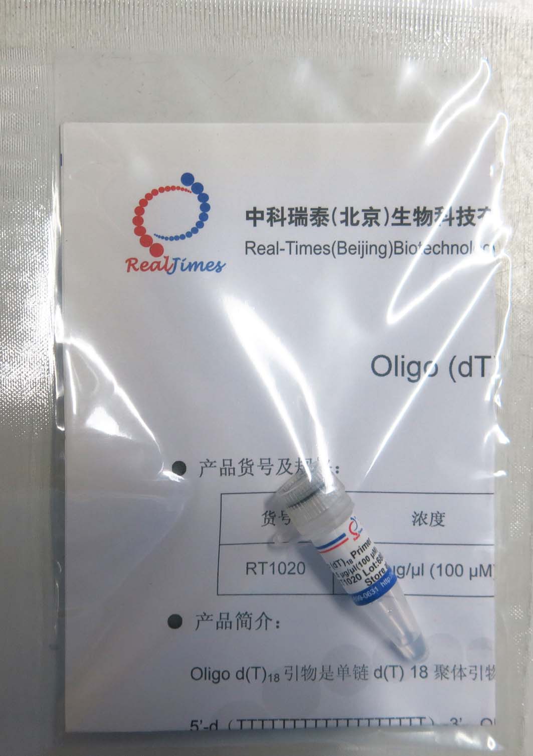 dT要與RNA的polyA尾巴結(jié)合,所以對(duì)RNA的質(zhì)量要求較高,即使RNA有少量降解也會(huì)使cDNA合成量大大減少。該產(chǎn)品是含有18個(gè)T的Oligo引物,已經(jīng)配成20倍的即用型溶液,如20μl反應(yīng)體系中使用1μl。