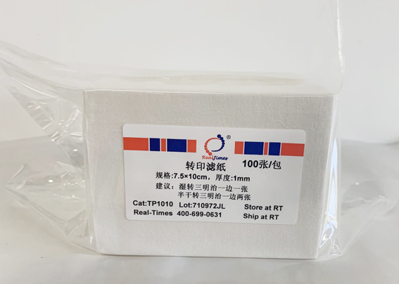 Paper for Blotting Transfer)是一種預(yù)裁切的可以直接用于Western、Northern、Southern、EMSA等蛋白或核酸轉(zhuǎn)印的濾紙。本轉(zhuǎn)印濾紙的材質(zhì)為100%純度的棉纖維素,不含任何添加劑,表面平整,質(zhì)地均一,不含任何干擾實(shí)驗(yàn)結(jié)果的雜質(zhì),結(jié)果重現(xiàn)性好。本轉(zhuǎn)印濾紙可以耐受用于蛋白和核酸印跡中的甲醇、乙醇及其它有機(jī)試劑。濾紙厚度為1 mm,預(yù)切割為7.5×10cm大小,無(wú)需自行裁切,使用方便。