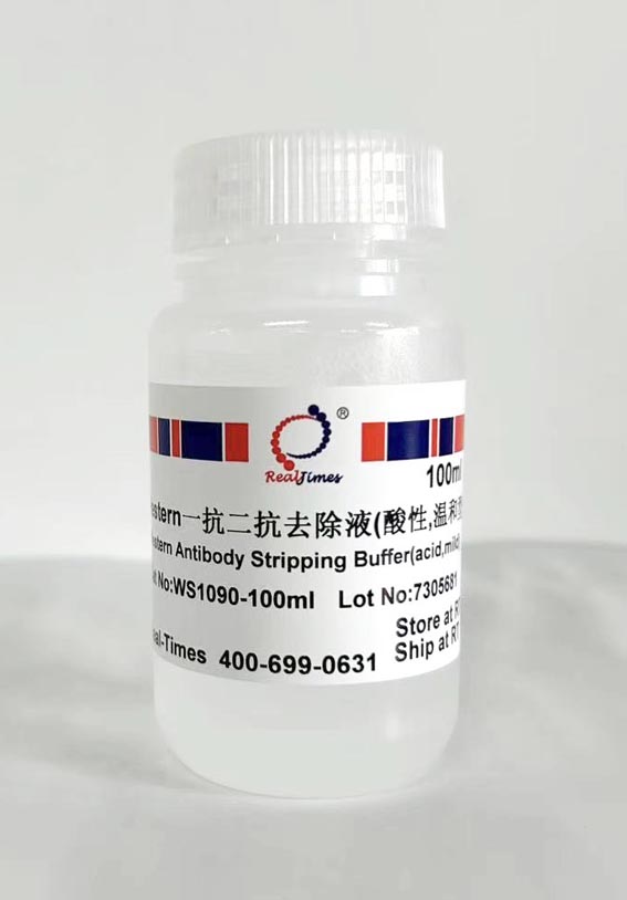 Western一抗二抗去除液(酸性,溫和型)(Western Antibody Stripping Buffer,acid,mild type)可以高效去除印跡膜上的一抗和二抗,而吸附在膜上的抗原基本不受影響,用于Western中轉(zhuǎn)移了蛋白膜的重復利用,可以轉(zhuǎn)一次膜,做多次Western印跡實驗,通??梢灾貜屠媚?-8次(PVDF膜)。使用本試劑只需大約20-30分鐘即可實現(xiàn)蛋白膜的重復使用,然后可以進行Western的后續(xù)操作。
